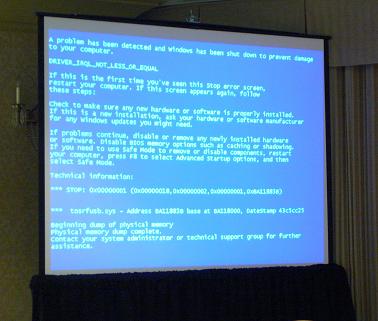 The computer and projector both have power. The computer is displaying the PowerPoint slides. The projector is switched to “computer” as the input. The projector keeps projecting a blue screen. You restart both the computer and the projector. Still a blue screen. You try a different cable. You try a different input. You press a lot of buttons. Still a blue screen. The service was supposed to start three minutes ago.