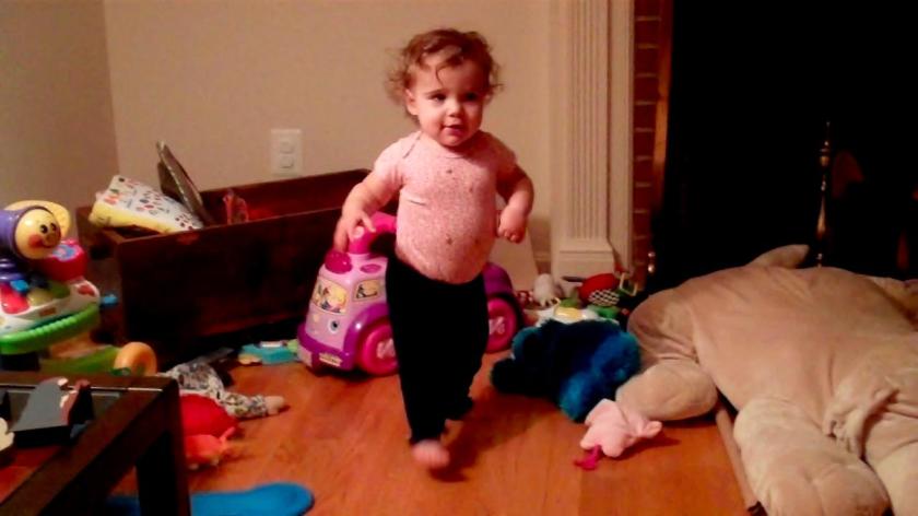 We were amazed. We applauded her, swooped her up and hugged her, took pictures and video, Skyped with her grandparents in California so they could see it, and delayed her bed time by quite a bit just so we could keep watching her walk.
